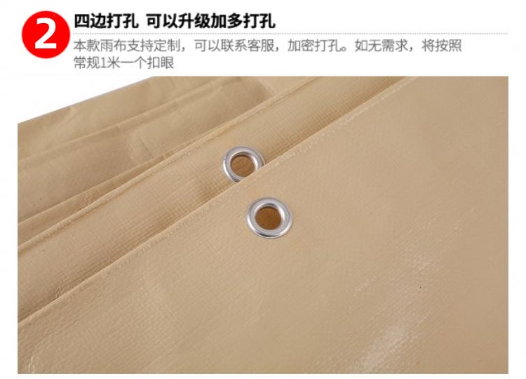 肉色PE防水篷布四邊打孔,默認常規1米一個扣眼,可以升級加多加密打孔,雨布支持尺寸規格定制。